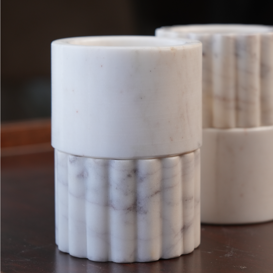 A clean, cylindrical silhouette with subtle fluted detailing at the base.