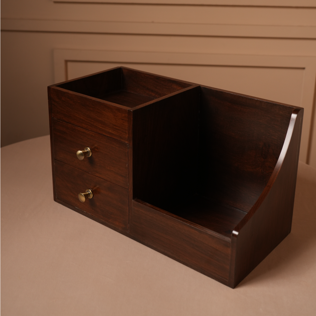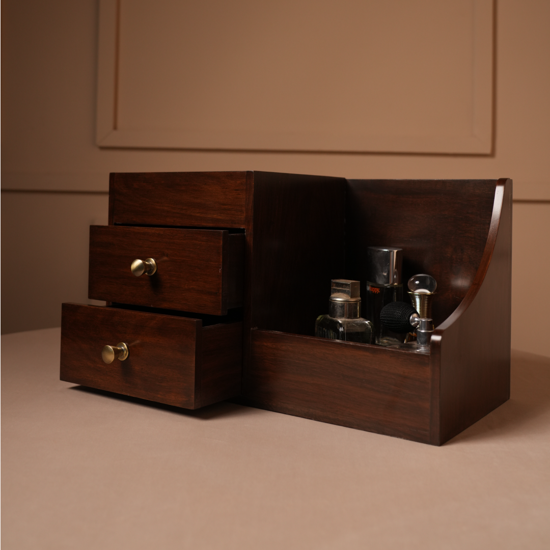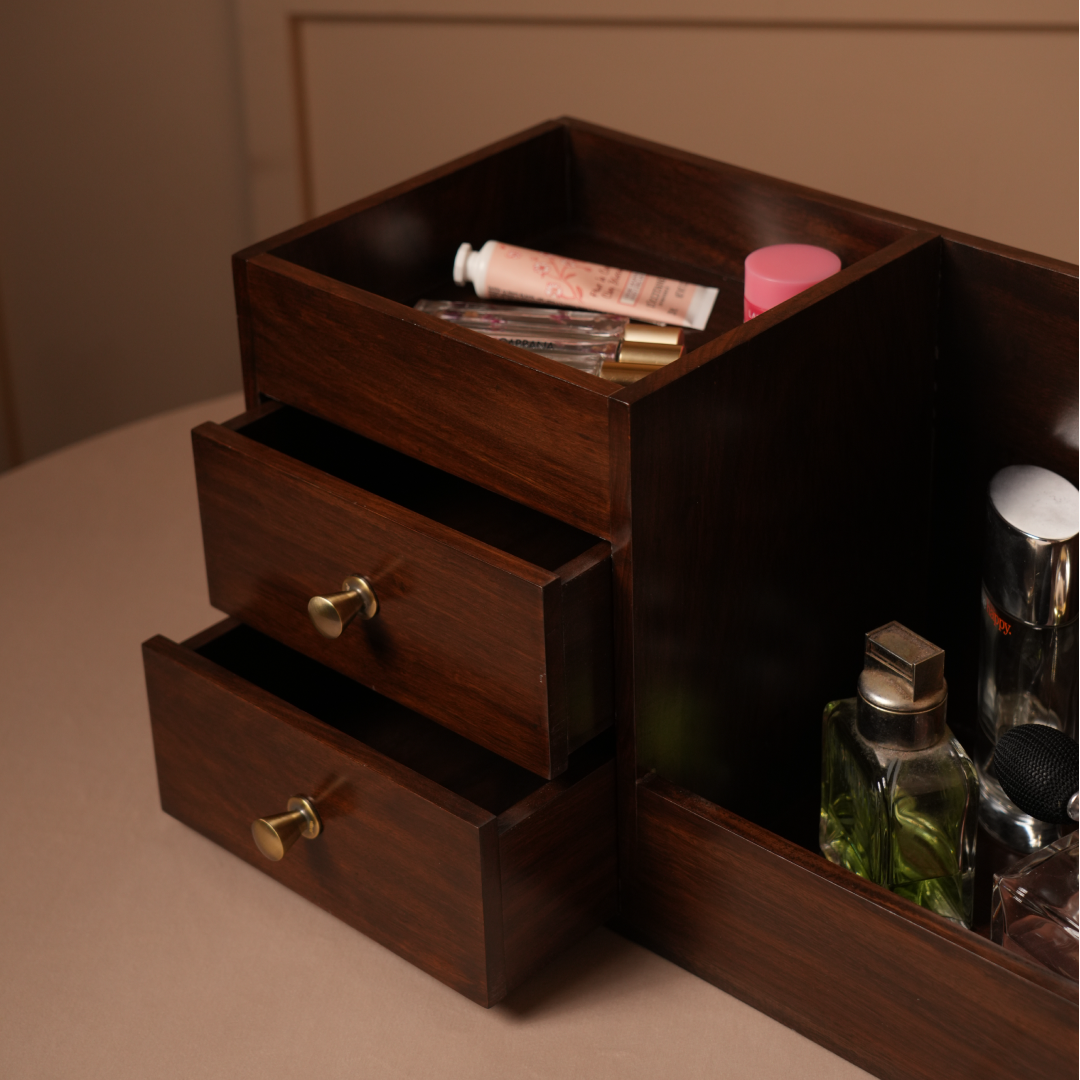 This elegant organizer features drawers and compartments to neatly store cosmetics, stationery, or daily essentials with timeless style.
